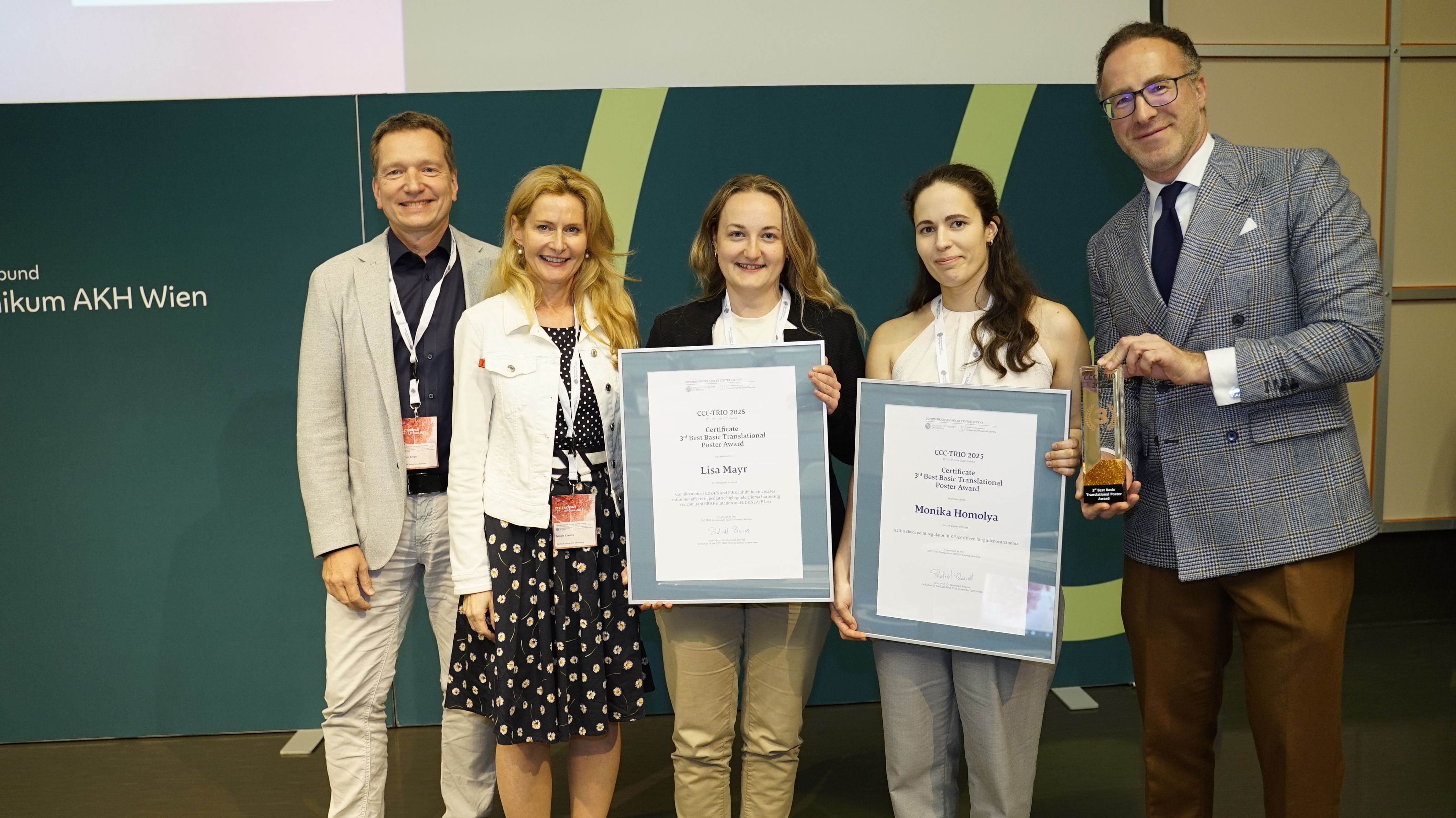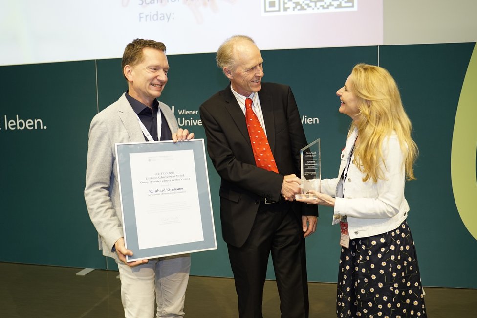 Mehr als 450 Teilnehmende, 135 Poster, 2 CCC Lifetime Achievement Awards und Top-Keynotes und jede Menge Austausch: Zwei Tage lang stand die translationale Krebsforschung im Zentrum des CCC-TRIO Symposiums 2025 des Comprehensive Cancer Center Vienna von MedUni Wien und AKH Wien. Über 450 Teilnehmende kamen am 12. und 13. Juni im Hörsaalzentrum der MedUni Wien zusammen, um aktuelle wissenschaftliche Entwicklungen zu diskutieren, Nachwuchsforschung zu präsentieren und neue Kooperationen anzustoßen.