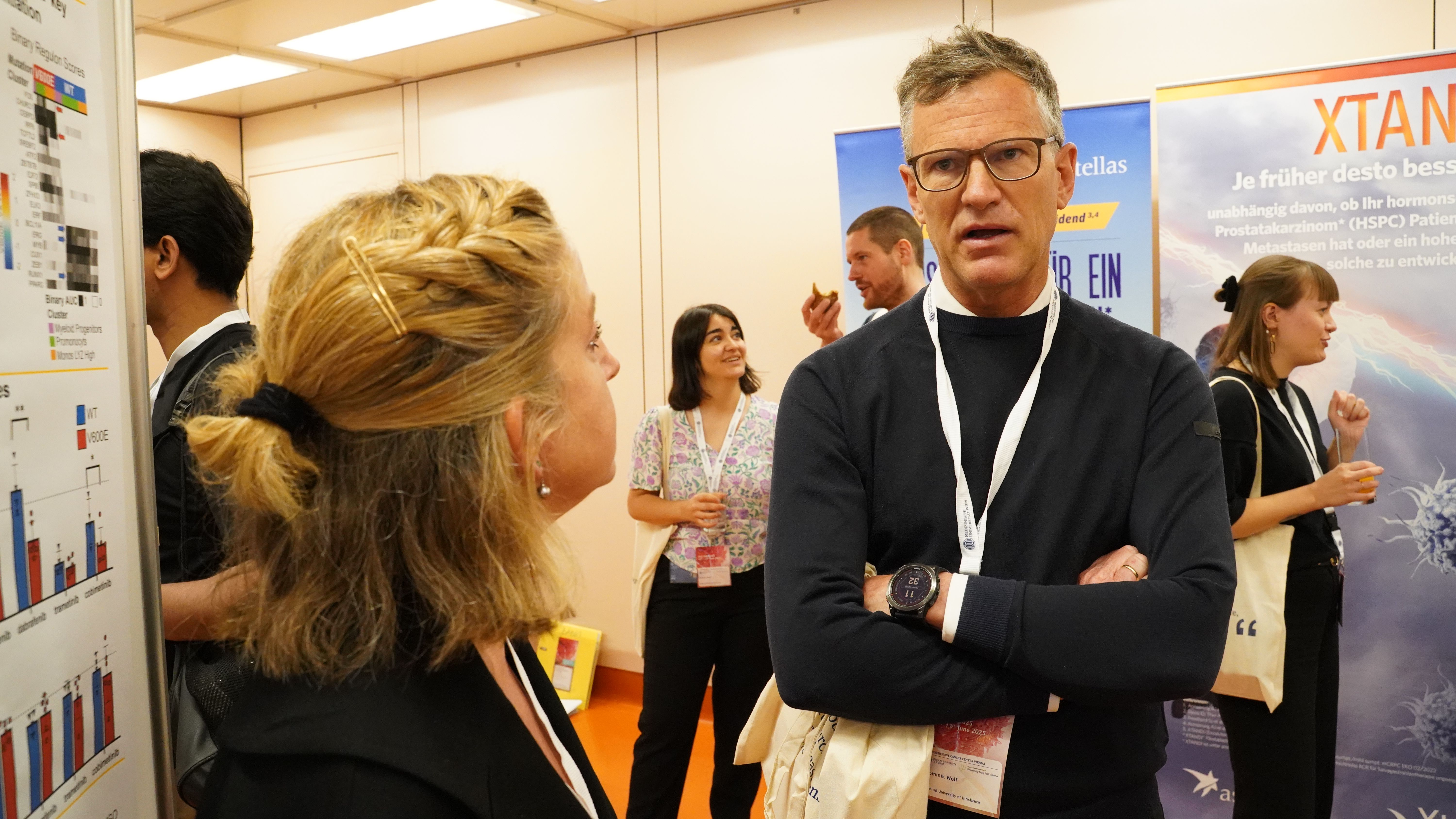 Der thematische Bogen spannte sich dabei von Immunonkologie und Krebs-Epidemiologie über Artificial Intelligence und Machine Learning bis hin zu neuen therapeutischen Targets und Biomarkern. Die Keynotes der renommierten Wissenschaftler:innen Florian Greten, Douglas Hanahan, Catherine Alix-Panabières, Tjalling Bosse, Anna Fagotti, Freddie Bray, Péter Hegyi und Thomas Powles lieferten visionäre Impulse – sowohl im Hinblick auf wissenschaftliche Konzepte als auch auf klinische Anwendungen. Gleichzeitig bot das Symposium – unter Mitwirkung der Medizinischen Universitäten Graz und Innsbruck – viel Raum für junge Krebsforscher:innen, persönliche Begegnungen und interdisziplinäre Kooperationen. „Wir brauchen Formate wie CCC-TRIO, um voneinander zu lernen – Grundlagenforschung von der Klinik, und umgekehrt. Nur so entsteht echte Translation", so CCC Leiter Shahrokh F. Shariat.